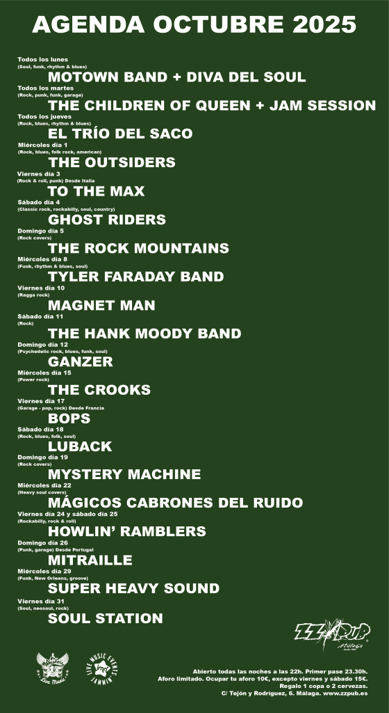 Aquí tienes nuestra playlist Spotify con temas que pinchamos habitualmente después de los conciertos en ZZPUB, para que puedas disfrutar de buena música aquellos días que no puedas venir a visitarnos. Y si no lo has hecho antes, te esperamos cada noche de la semana en el centro de Málaga con música en directo.